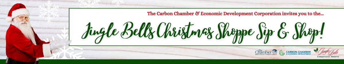 Join the Carbon Chamber & Economic Development Corporation at the Jingle Bells Christmas Shoppe's 7th Annual Sip & Shop Event on Wednesday, November 19th from 5-7 PM!